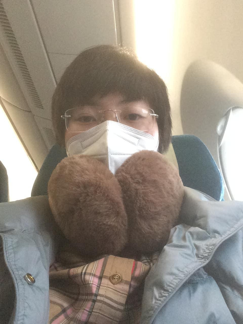 | Thu Hằng chụp ảnh tại sân bay cùng bố mẹ và em gái. |
