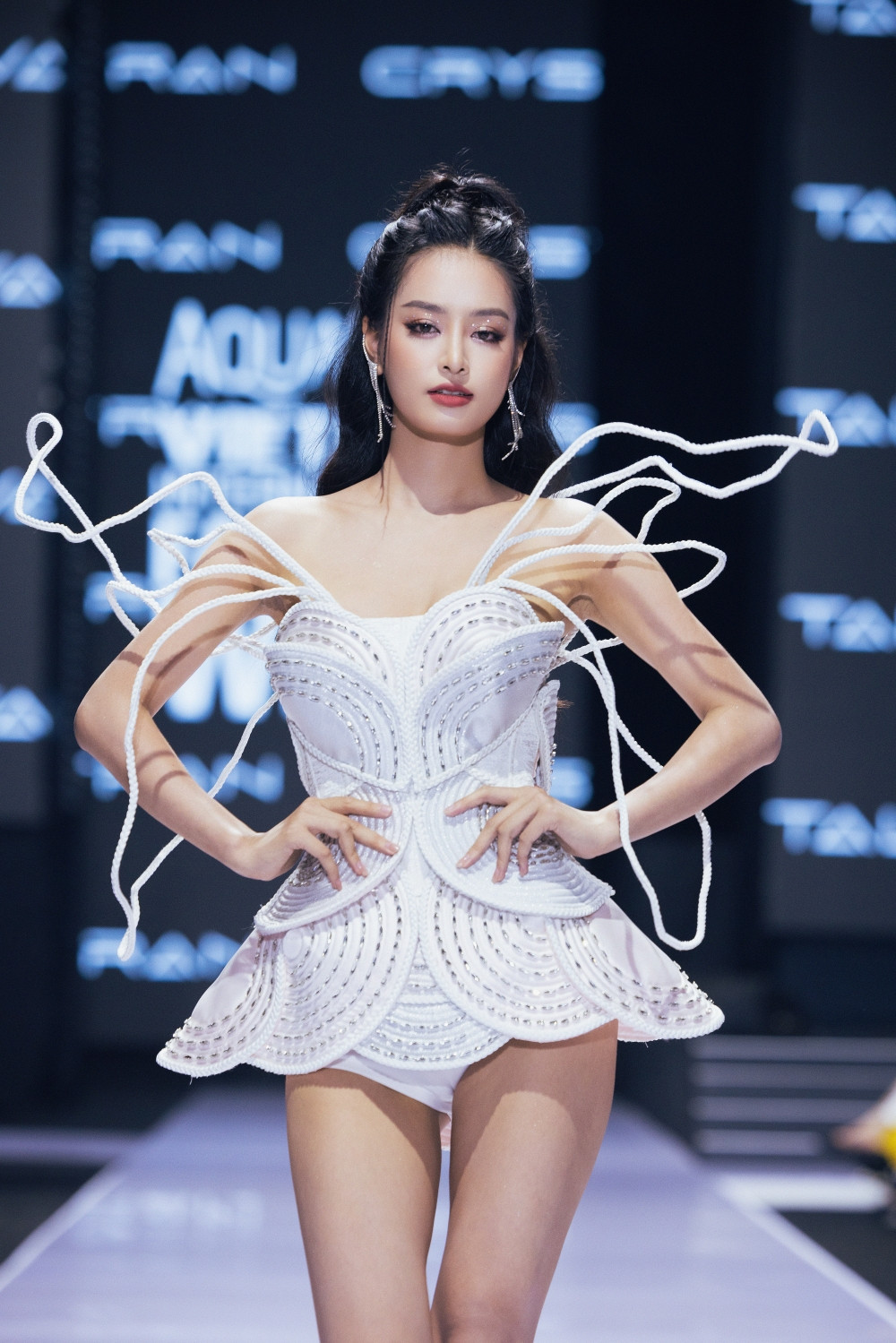 Các thiết kế bó sát, tôn dáng giúp các người mặc khoe trọn vóc dáng. Hạt pha lê lấp lánh trong suốt và đầy mê càng khiến khán giả khó rời mắt.