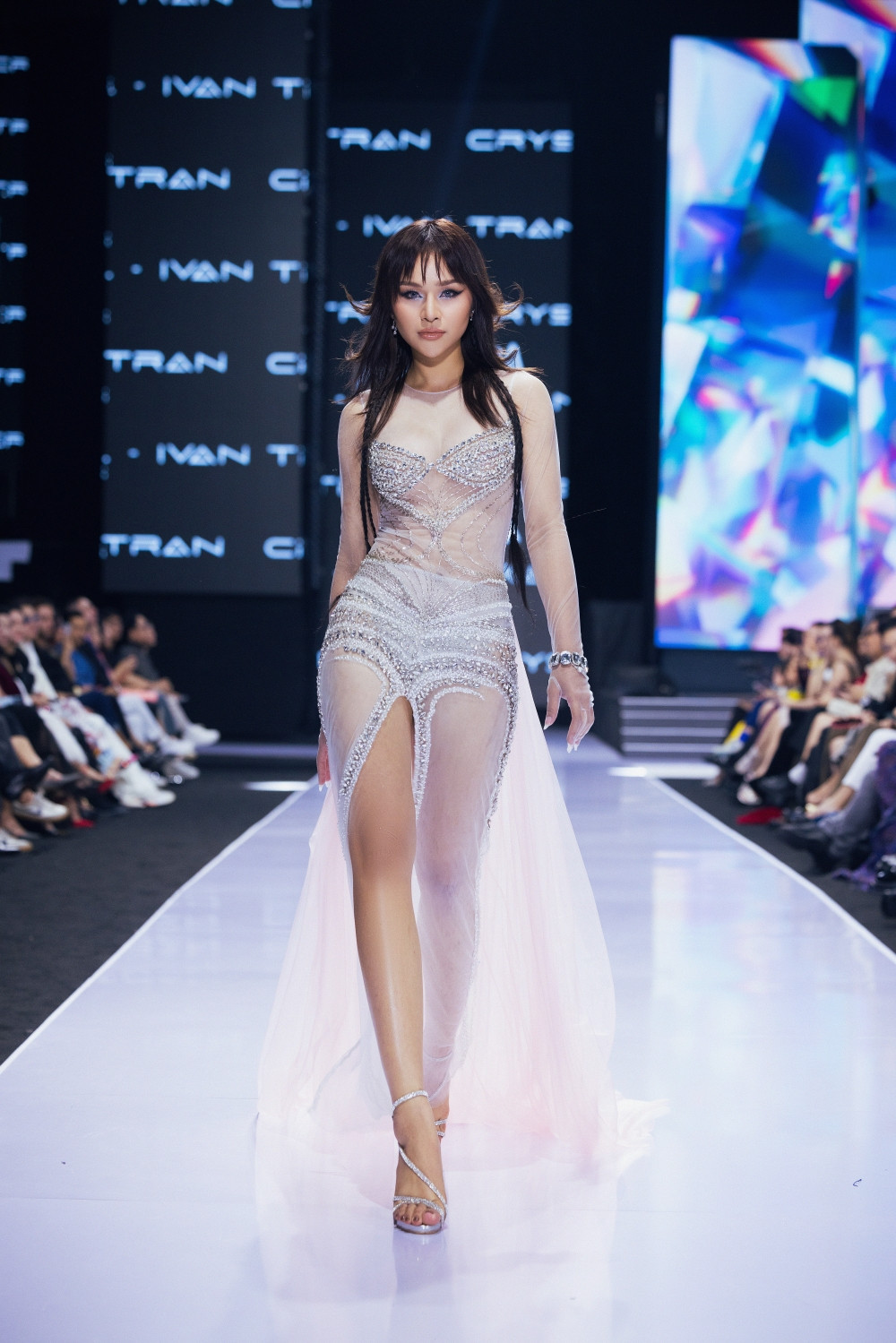 HHTO - Tham gia Vietnam International Fashion Week 2023 tại Hà Nội, NTK Ivan Trần mang đến bộ sưu tập mới mang tên Crystal. Mở màn BST là Á hậu 1 Miss Grand Vietnam 2023 Bùi Khánh Linh, Lê Thu Trang - Quán quân The New Mentor làm vedette.