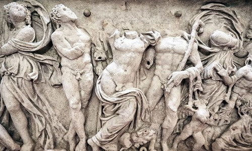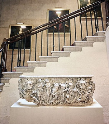 Trong số tranh khắc có hình thần rượu Dionysus đang say xỉn dựa vào thần rừng cũng say không kém. Ở hai bên của cặp đôi là những người tham dự tiệc rượu bao gồm Hercules và Ariadne cùng với hai chiếc đầu sư tử lớn. Quan tài cẩm thạch nặng hơn 400 kg.