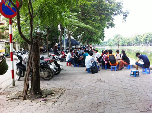 Theo một số chủ quán, kinh doanh ở đây tận dụng được khoảng vỉa hè khá rộng, cộng với hàng cây và mặt hồ là điều kiện lý tưởng để mở quán. Bên cạnh đó, khu vực này cũng khá nhiều cơ quan, công sở và trường học nên thu hút lượng khách lớn. Vì thế, quán nào khách cũng ra vào tấp nập là điều dễ hiểu.