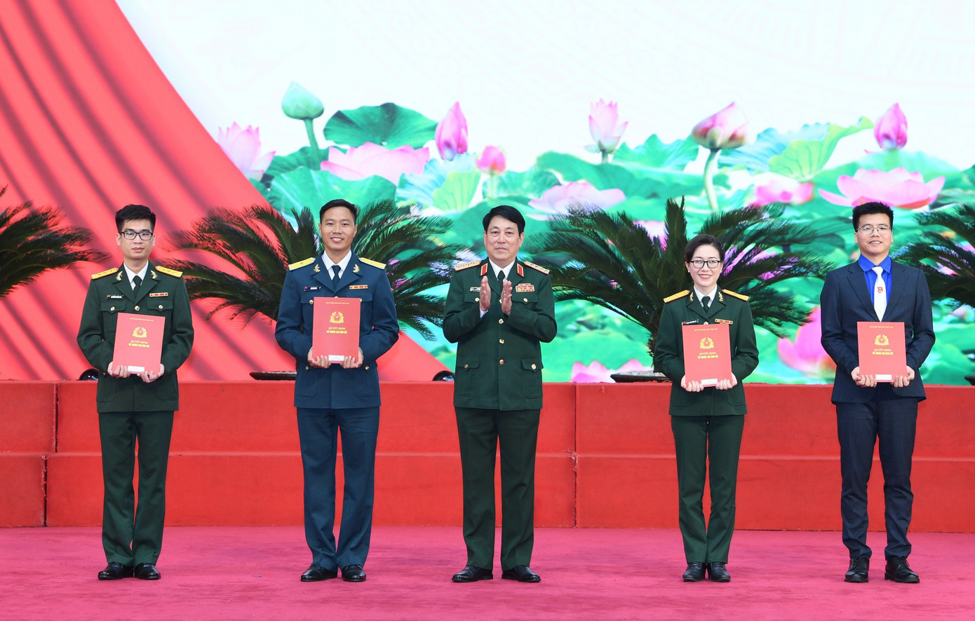 | Đại tướng Lương Cường - Chủ nhiệm Tổng cục Chính trị QĐND Việt Nam, trao các Quyết định tuyển dụng cán bộ, phong, thăng quân hàm sĩ quan và nâng lương cho 4 GMTTB toàn quân năm 2023. |