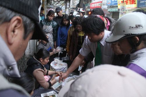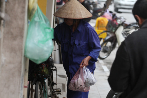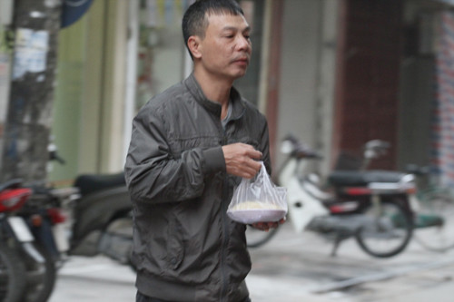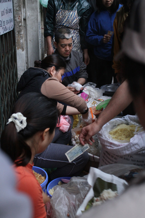 Khách hàng mua xôi ở quán phần lớn là người dân lao động sinh sống ở Thủ đô