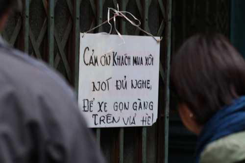 Tấm biển nhắc nhờ khách hàng khi đến mua xôi giá rẻ