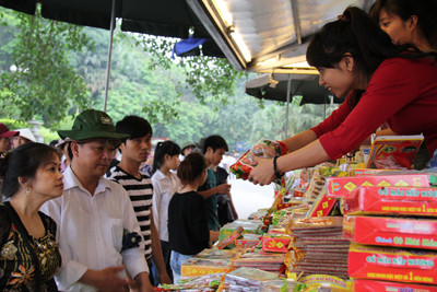 Hàng quán hai bên đường tại các lối dẫn quanh Đền Hùng đều cam kết không bán hàng chặt chém, chèo kéo du khách