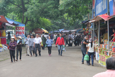 Khách hành hương lên Đền không phải chen lấn có lẽ vì lượng khách chưa đông. Họ được lực lượng giữ gìn ANTT bảo vệ và thanh niên tình nguyện hướng dẫn chu đáo
