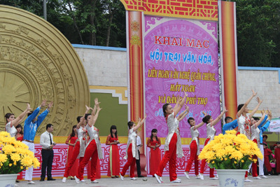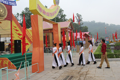 Hội trại văn hóa của các huyện, thị tỉnh Phú Thọ năm nay trang hoàng khá đẹp, phô diễn những nét văn hóa đặc trưng cua đất và người vùng trung du
