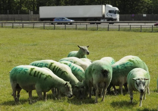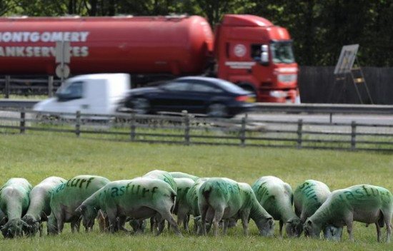 Trang trại của ông James Metcalfe gần Richmond, North Yorkshire, nằm bên cạnh quốc lộ A1, có rất nhiều xe cộ qua lại. Ông từng đề xuất dựng biển quảng cáo có tên công ty ở đây nhưng bị chính quyền từ chối với lý do nó có thể làm sao nhãng sự tập trung của lái xe. Để “lách luật”, ông nảy ý tưởng thay thế biển quảng cáo bằng... những con cừu.