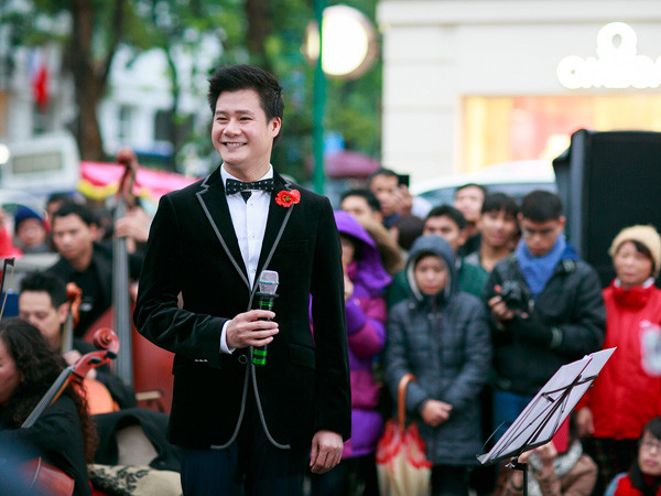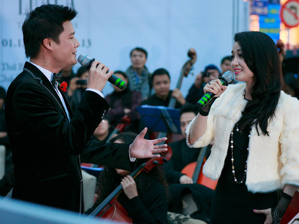 | Quang Dũng, Phạm Thu Hà trong chương trình hòa nhạc đường phố Luala Concert. |