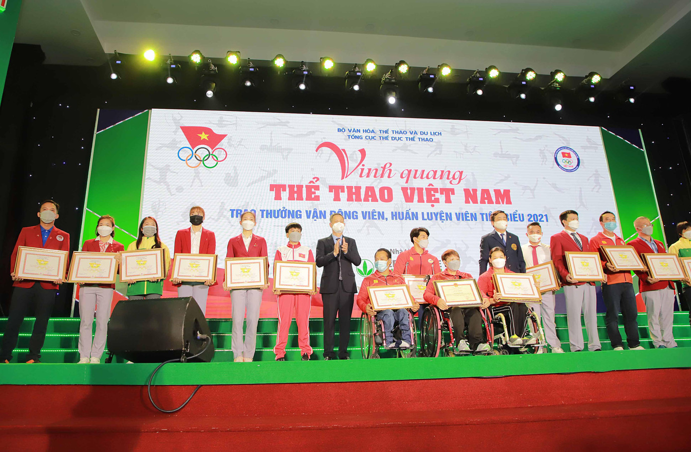Ngày 20/3, Bộ Văn hóa, Thể thao và Du lịch, Ủy ban Olympic Việt Nam, Tổng cục TDTT tổ chức chương trình "Vinh quang Thể thao Việt Nam", trao thưởng và tôn vinh những VĐV, HLV tiêu biểu toàn quốc có nhiều đóng góp cho thể thao nước nhà trong năm 2021.