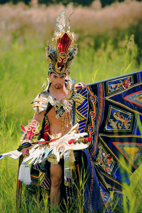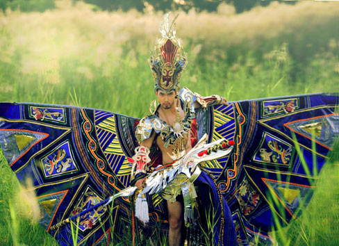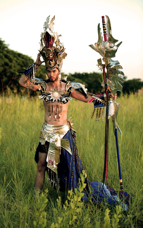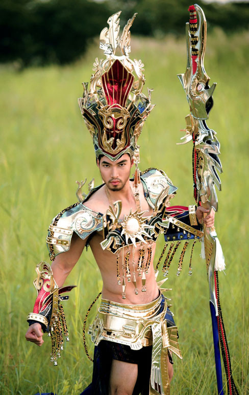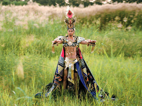 Bộ trang phục dân tộc của Quang Huân được NTK Long Dũng thực hiện lấy từ hình tượng Vua Hùng đời thứ 1.