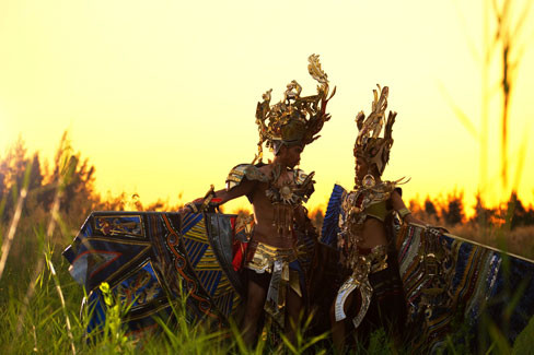 Nhà thiết kế muốn khắc họa nên hình ảnh Vua Hùng với góc nhìn mới nhưng vẫn giữ được những yếu tố cổ đại bằng hoa văn trống đồng trên hộ tâm phiến, trên nón của bộ trang phục có hình chiếc thuyền với những vũ công đánh trống, ngư dân chèo thuyền...