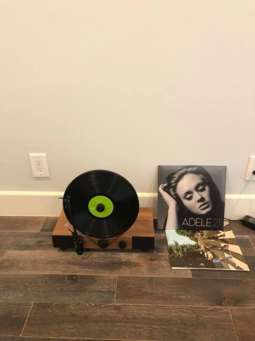 Một góc trong căn biệt thự được bài trí đĩa than của Adele.