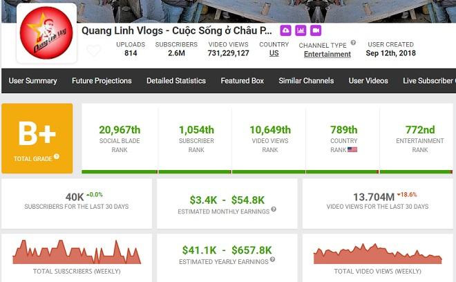 Tuy nhiên, thống kê trên trang SocialBlade chỉ là con số ước chừng, thực tế thì thu nhập từ YouTube của các chủ kênh tại Việt Nam chưa có con số cụ thể.