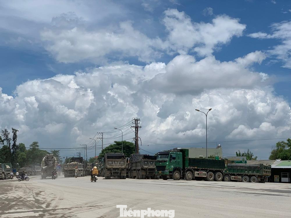 | Hàng nghìn lượt xe tải qua lại khiến bụi bay mù mịt. |
