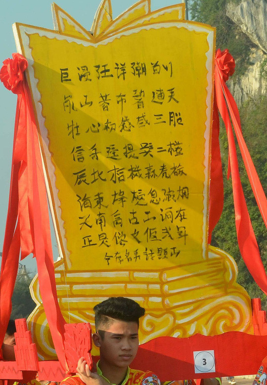 Đáng tiếc là ngay cả văn bản bài thơ này khi được sao chép để đem đi rước/ diễu hành khắp TP Hạ Long cũng lại bị sai quá nhiều khiến người am hiểu về Hán Nôm chê cười mà gọi là “văn hóa cấp phường”. Nếu nghiêm túc thì ban tổ chức đã nhờ một thư pháp gia để viết đàng hoàng.