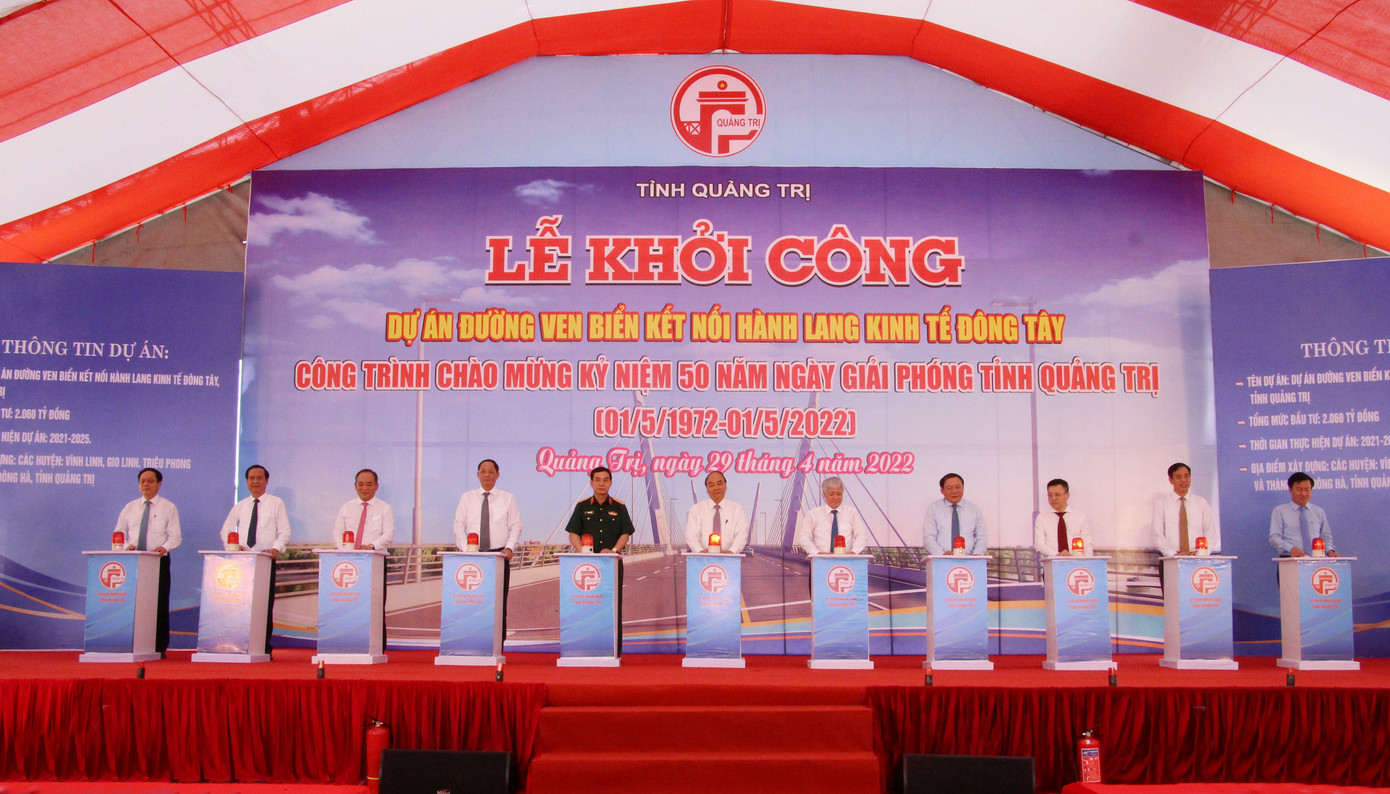 Ngày 29/4, tại xã Triệu Vân, huyện Triệu Phong, UBND tỉnh Quảng Trị tổ chức lễ khởi công dự án Đường ven biển kết nối hành lang kinh tế Đông Tây, tỉnh Quảng Trị - Giai đoạn 1.