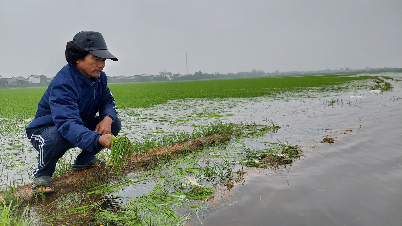 Ông Văn Ngọc Tiến Đức, Trưởng Phòng NN-PTNT huyện Hải Lăng, thông tin để giảm thiệt hại cho nông dân, đơn vị đã tăng cường công tác kiểm tra tình hình ngập úng trên đồng ruộng, huy động tối đa phương tiện, máy bơm để tiêu úng. “Chúng tôi cũng đã chủ động phương án hộ đê, gia cố các đoạn đê xung yếu, nâng cao trình các đoạn đê bị tràn. Đồng thời, khoanh vùng, gia cố bờ vùng, bờ thửa để tiêu úng phù hợp”, ông Đức nói.