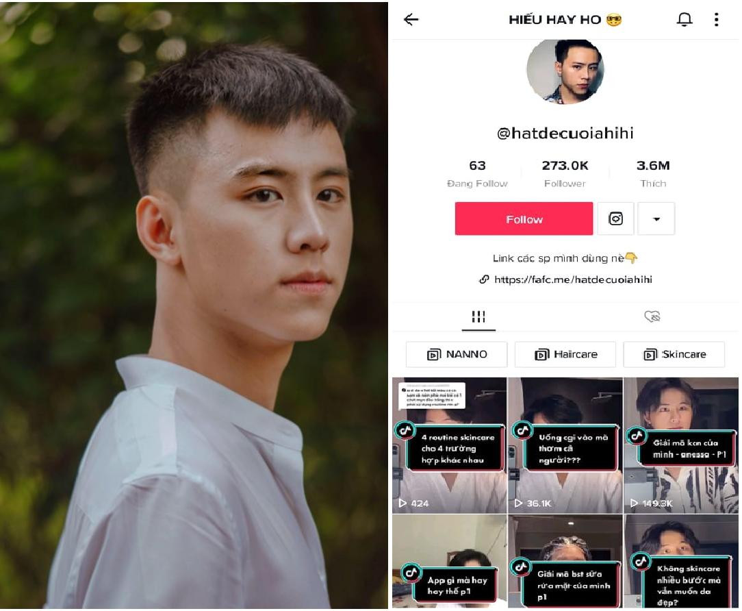 Hiếu Hay Ho tên thật là Nguyễn Minh Hiếu, hiện đang là sinh viên Học viện Báo chí và Tuyên truyền. Dù mới chỉ tham gia TikTok được 6 tháng, tài khoản @hatdecuoiahihi của anh chàng đã sở hữu 273K người theo dõi cùng 3,6 triệu lượt thả tim và nhiều clip triệu view.