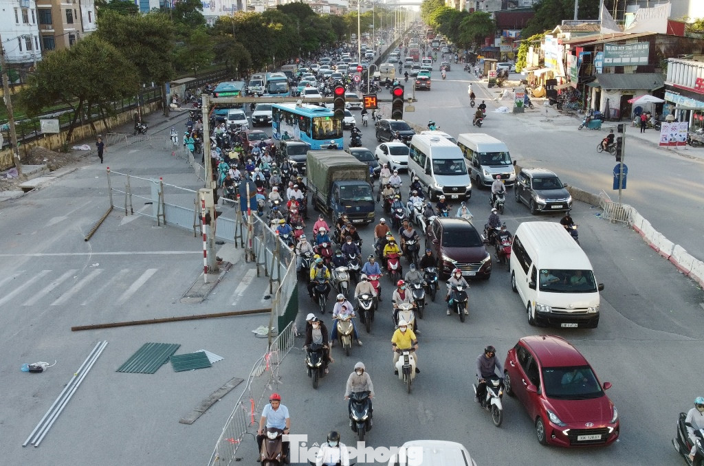 | Ùn ứ giao thông những ngày qua tại vị trí hàng rào trên đường Giải Phóng đoạn qua nút giao Kim Đồng - Giải Phóng |