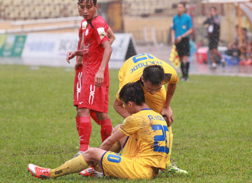 Cuối trận đấu trên sân Vinh, Đình Luật phạm lỗi nguy hiểm với Olaha. Sau đó, trung vệ của TP HCM còn nói với các đồng đội rằng nếu anh vào hết chân, tiền đạo chủ nhà sẽ phải nghỉ thi đấu ít nhất ba trận. Nghe được, Quế Ngọc Hải bất bình nên có lời qua tiếng lại với đàn anh. HLV Đức Thắng của SLNA cuối trận cũng tranh cãi với thủ quân của TP HCM về tình huống trên.