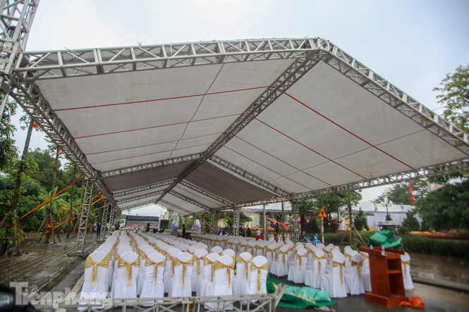 TPO - Tại Nghĩa trang Liệt sĩ xã Sài Sơn (Quốc Oai, Hà Nội), thân nhân và chính quyền đang hoàn tất công việc chuẩn bị cho tang lễ Thiếu tướng Nguyễn Hữu Hùng, một trong 13 liệt sĩ hy sinh tại Trạm 67 khi đi cứu hộ thuỷ điện Rào Trăng 3 (Thừa Thiên Huế).