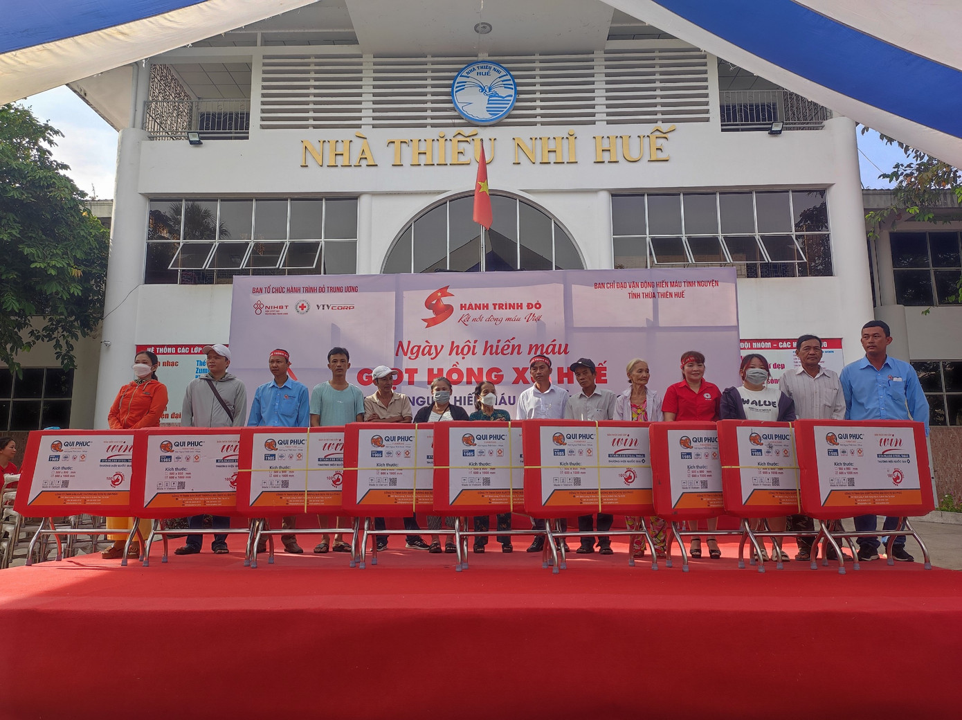Năm 2023 là năm thứ 7 Qui Phúc tham gia chiến dịch hiến máu xuyên Việt Hành trình Đỏ. Hành trình “Kết nối dòng máu Việt” lần thứ XI kéo dài trong 2 tháng, đi qua 48 tỉnh/thành phố. Năm nay Qui Phúc đã dành tặng 15.000 phần quà tri ân nghĩa cử cao đẹp của người hiến máu, ủng hộ 60 bộ bàn ghế cùng Hội Chữ thập đỏ chăm lo, trợ giúp đến các hộ gia đình khó khăn, gia đình chính sách tại 6 tỉnh Bạc Liêu, Lâm Đồng, Bình Định, Quảng Ngãi, Thừa Thiên Huế, Quảng Trị. Qua 7 năm đồng hành cùng Hành trình Đỏ, Qui Phúc đã vận động được hơn 1000 lượt người tham gia hiến máu tình nguyện, tổng giá trị đóng góp bằng hiện vật, hiện kim là gần 15 tỷ đồng.