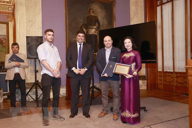 Nhóm Nghị sỹ hữu nghị Đông Uruguay-Việt Nam và Nhóm Nghị sỹ hữu nghị Việt Nam-Đông Uruguay ra mắt. (Ảnh: Doãn Tấn/TTXVN)