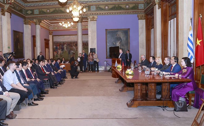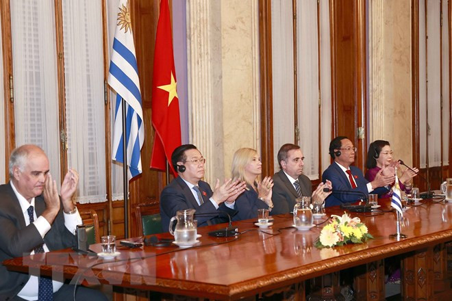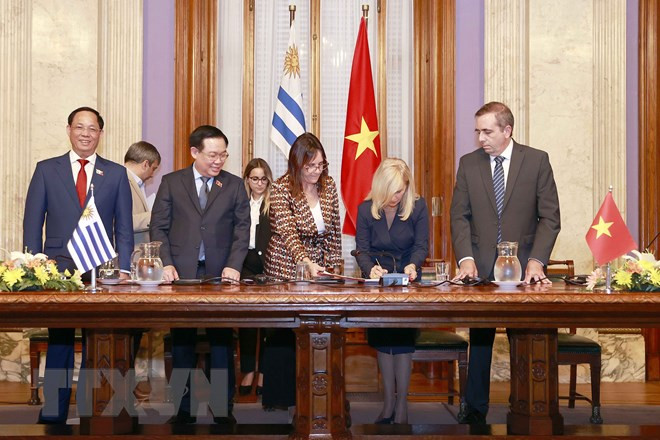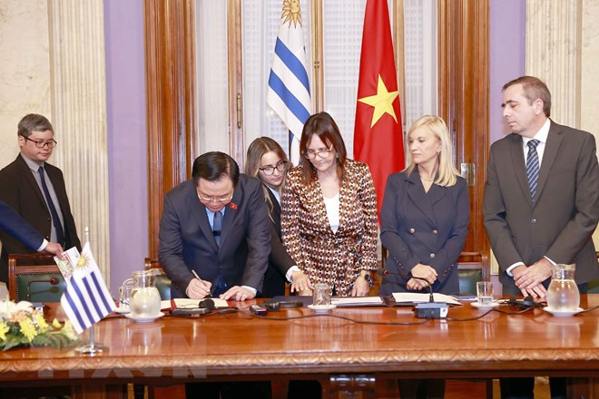 Theo Đặc phái viên TTXVN, sáng 27/4 theo giờ địa phương, trong khuôn khổ chuyến thăm chính thức Uruguay, tại trụ sở Quốc hội Uruguay, Chủ tịch Quốc hội Vương Đình Huệ và Chủ tịch Thượng viện, Phó Tổng thống Uruguay Beatriz Argimon và Chủ tịch Hạ viện Uruguay Sebastian Andujar đã cùng ký Thỏa thuận hợp tác giữa Quốc hội Việt Nam với Thượng viện và Hạ viện Uruguay.