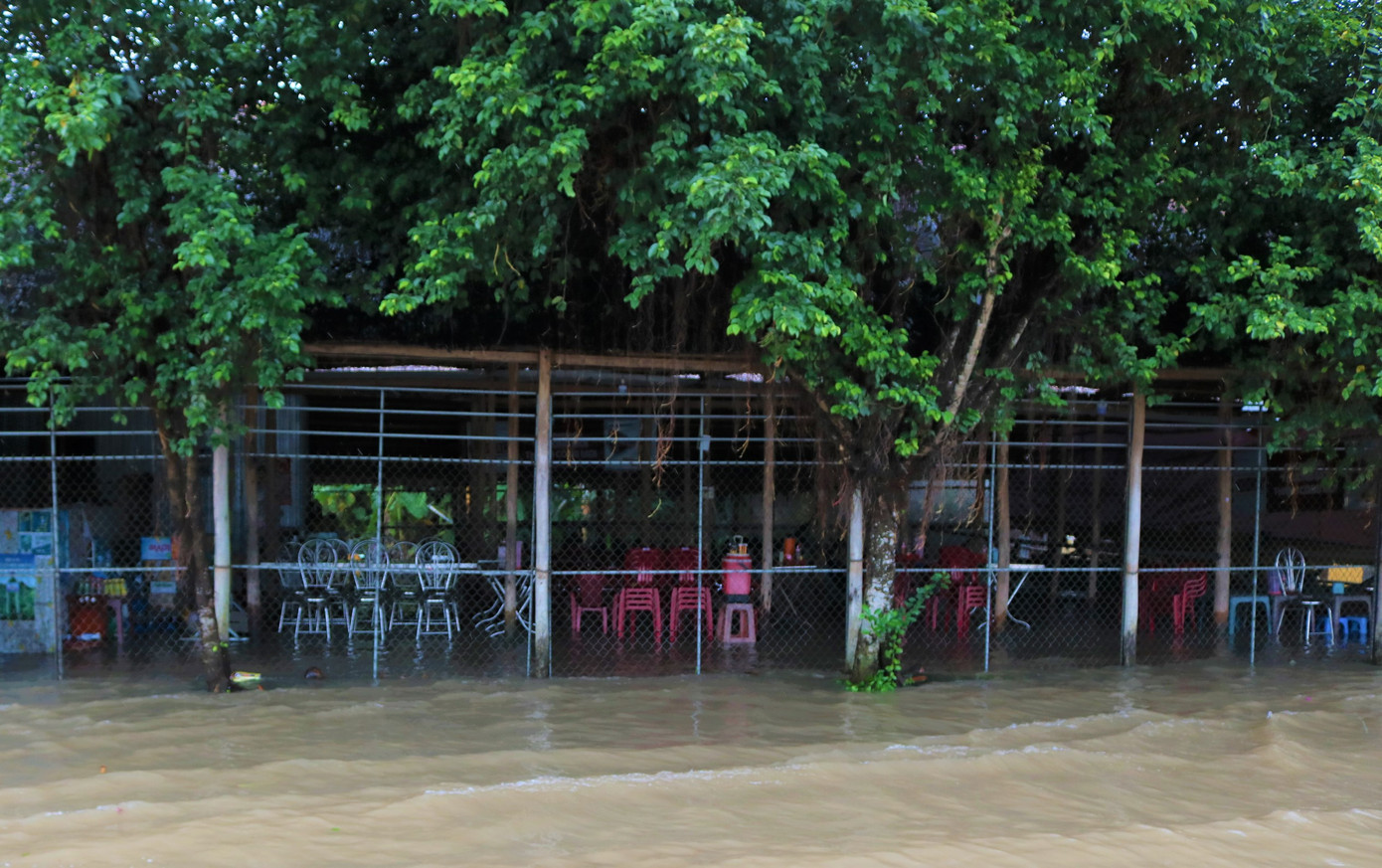 Ghi nhận của phóng viên vào khoảng 6h sáng nay tại đoạn đường trên, triều cường đã dâng rất cao, ngập kéo dài khoảng 3km. Nơi sâu nhất (tính từ mặt đường) cũng tầm 1m, gây khó khăn cho việc lưu thông của hàng loạt phương tiện ô tô, xe máy trên tuyến quốc lộ.