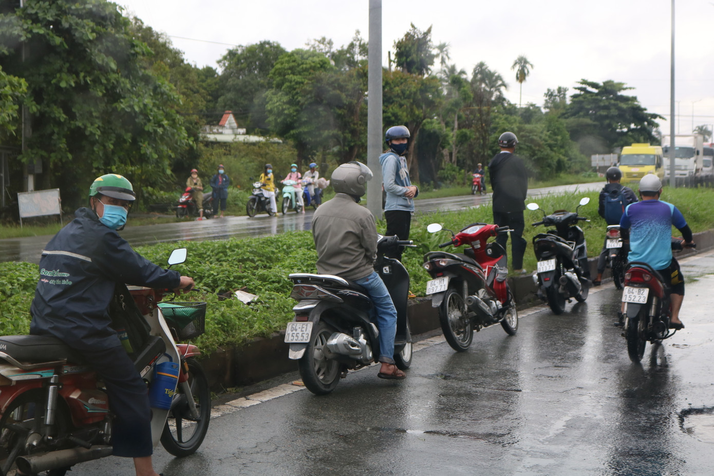 Xe tải chuyên dụng đưa phương tiện người dân vượt 3km đường ngập sâu trên quốc lộ 1 - Ảnh: Kim Hà. Có xe gắn máy bị tắt máy do đi qua đoạn đường bị ngập nước, chị Nguyễn Thị Tuyết Hà (một công nhân tại Vĩnh Long) nói: “Năm nào nước cũng ngập lên hết. Tôi là công nhân đi làm hôm nay bị hư xe như thế này là phải bị mất một ngày công rồi đó nhưng cũng nhờ mấy anh công an giúp đỡ, tôi rất cảm ơn. Mấy anh cũng ra sức lắm nhưng do số lượng xe nhiều quá nên không xử lí kịp”.