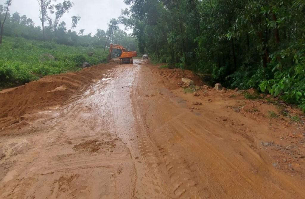 | Xử lý đất đá bồi lấp và chăng dây cảnh báo nguy hiểm trên Quốc lộ 49A đoạn qua vùng đồi núi A Lưới |