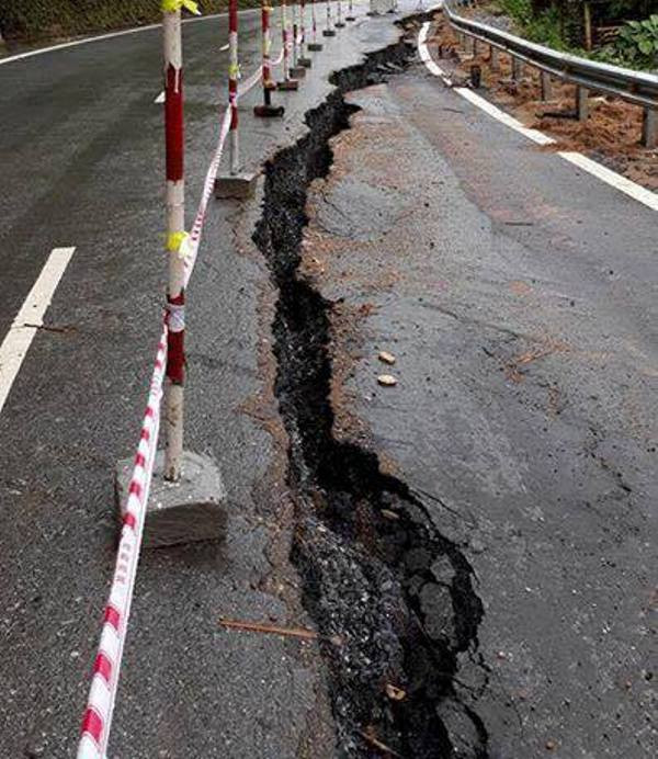 Quốc lộ nứt toác sau mưa bão