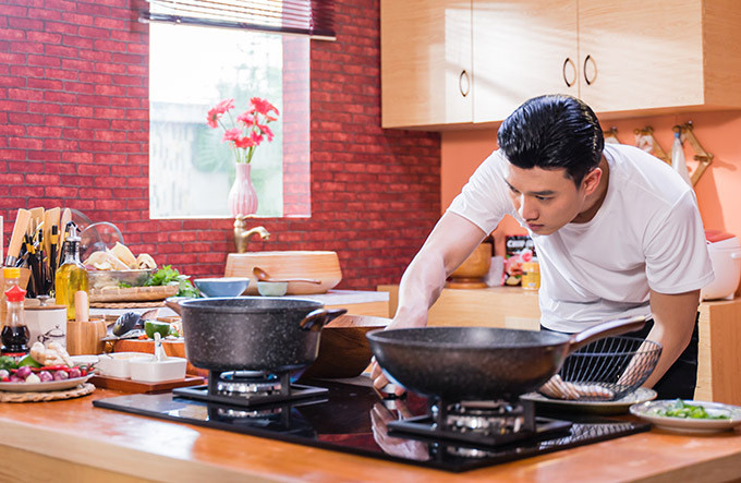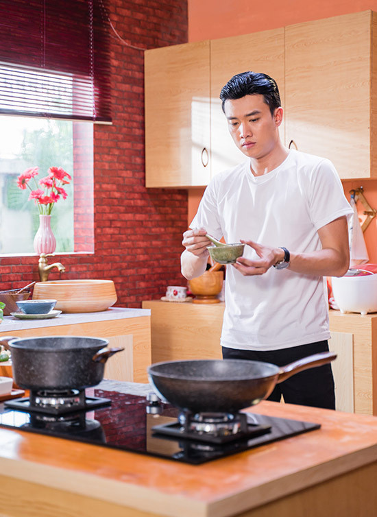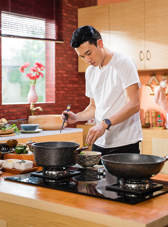 Ở tập 1, Quốc Trường trổ tài nấu món ghẹ chưng thịt, canh đu đủ nấu da heo dành tặng cho người phụ nữ yêu quý nhất cuộc đời anh chính là mẹ.