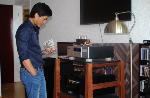 Quốc Tuấn vui vẻ giới thiệu căn hộ chung cư có không gian mở mà anh chuyển về sống cách đây không lâu. Căn hộ đơn giản nhưng gọn gàng, thoáng đãng, có nơi dành riêng con trai và nơi anh dành cho sở thích của bản thân. Nam nghệ sĩ hăm hở khoe dàn loa anh đầu tư để nghe nhạc với những chiếc đĩa Chopin, Schubert... trên kệ. "Mình ồn ào nhiều rồi. Giờ đã đến lúc lắng xuống, tìm không gian cho bản thân, tận hưởng cuộc sống của riêng mình. Tôi thích nghe nhạc Jazz, nhạc Country. Buổi tối, ngồi một mình, bật nhạc lên cho giai điệu ngấm vào người, cảm thấy rất thú vị và thanh thản", anh nói.