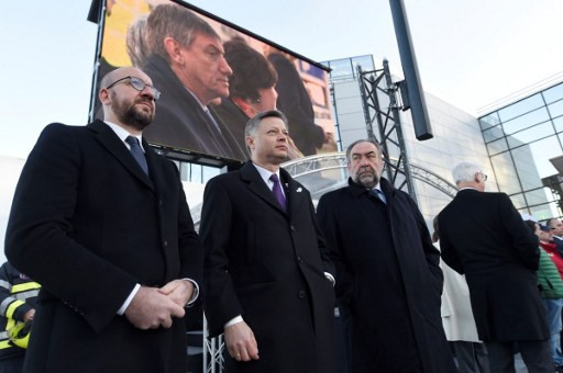 Thủ tướng Bỉ Charles Michel (trái), Giám đốc điều hành sân bay Brussels Arnaud Feist và Chủ tịch sân bay Brussels Marc Descheemaecker có mặt tại sân bay từ sớm để tham dự lễ tưởng niệm