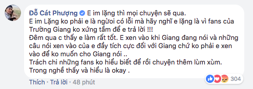 Ngay ở dưới phần bình luận, Cát Phượng cũng lên tiếng khuyên rằng Quý Bình nên bình tĩnh, fan của Trường Giang không xứng tầm để anh phải trả lời.