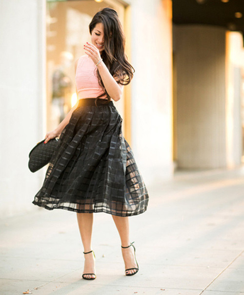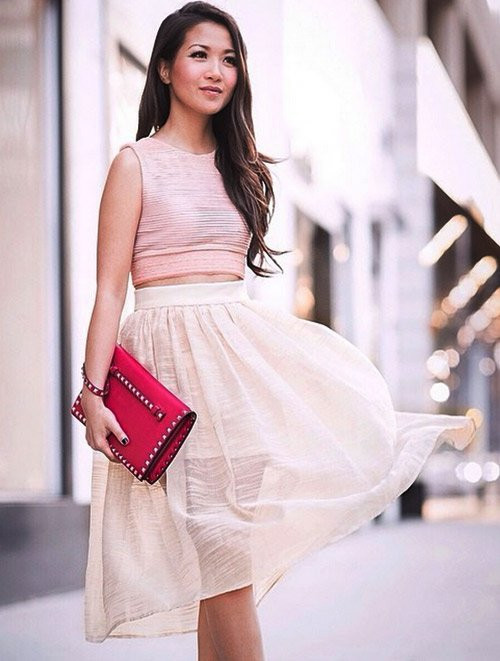 Váy midi chất mỏng manh luôn đi cùng áo bó ôm sát và sandal cao gót thanh mảnh