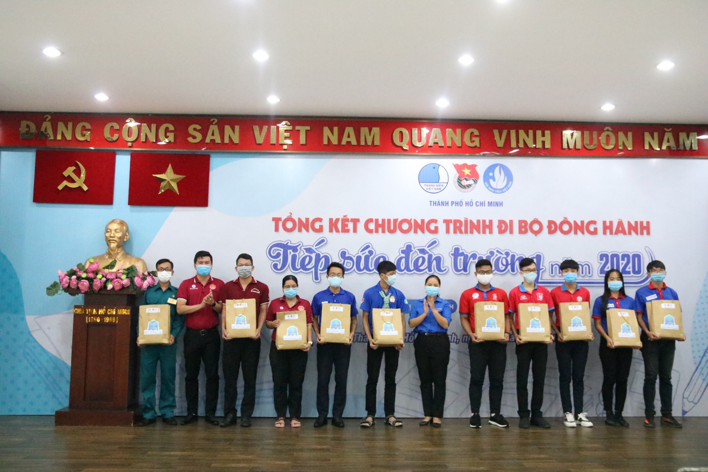 Tại buổi lễ, Thành Đoàn TP. HCM đã trao 15 suất học bổng (18 triệu đồng/suất) cho các sinh viên vượt khó học tốt. Đồng thời, biểu dương và khen thưởng 10 chiến sĩ của các chương trình, chiến dịch tình nguyện hè đạt thành tích xuất sắc trong tham gia chương trình đi bộ đồng hành.