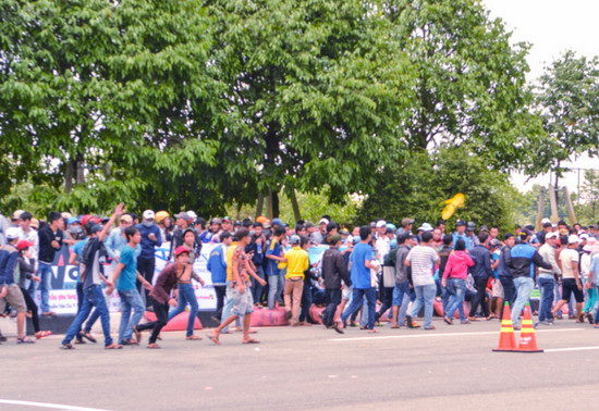 Khi đứng xem người này cứ muốn đứng trước người kia, nên cứ thế chen lấn và kéo nhau vượt hàng rào, cùng nhau tràn xuống đường. Dù cho BTC đã linh động chuyển từ 4 làn đua xuống 2 làn đua nhưng vẫn không bảo đảm an toàn.