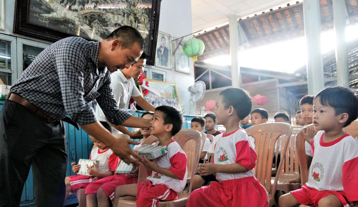| Các em nhỏ nhận sữa từ chương trình Quỹ sữa Vươn cao Việt Nam trong năm 2020 |