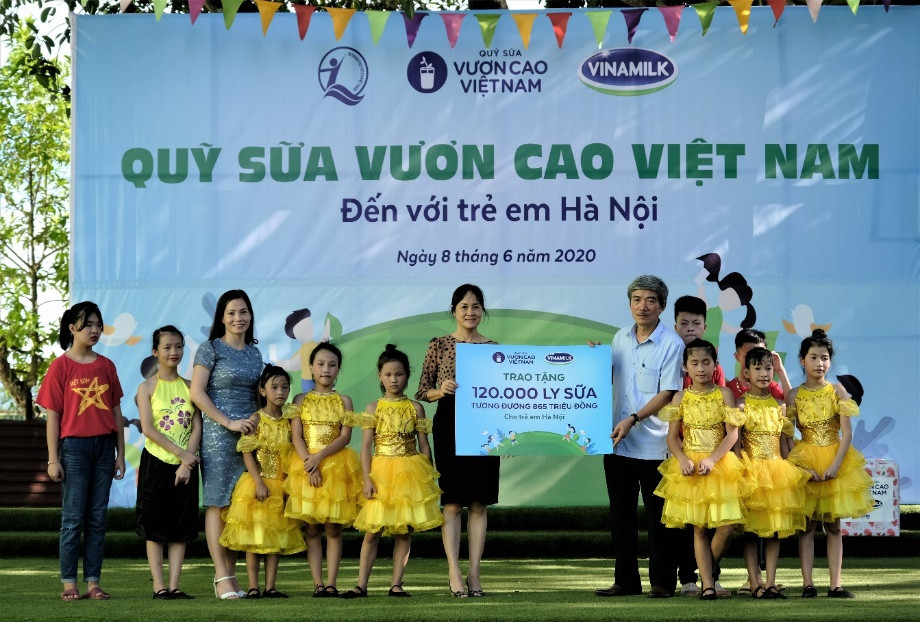 Trong năm 2020, Vinamilk và Quỹ sữa Vươn cao Việt Nam trao tặng 120.000 ly sữa, tương đương khoảng 865 triệu đồng cho hơn 1.300 trẻ em có hoàn cảnh khó khăn hiện đang được chăm sóc, nuôi dạy tại các trung tâm bảo trợ trẻ em, các nhà mở, nhà tình thương trên địa bàn thành phố Hà Nội. Các em được uống sữa miễn phí liên tiếp trong 3 tháng nhằm tăng cường chế độ dinh dưỡng, hỗ trợ nâng cao sức khỏe và sức đề kháng.