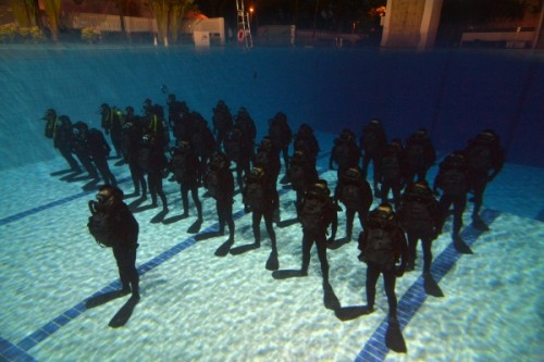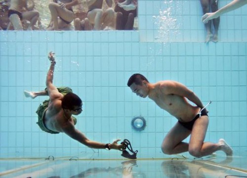Trong quá trình đào tạo năng lực tại hồ bơi, học viên phải bình tĩnh giữ nhịp thở và thực hiện chính xác các động tác sau khi huấn luyện viên tháo mặt nạ bơi và ống khí của họ. Học viên sẽ phải tìm cách để sinh tồn.