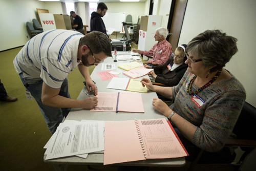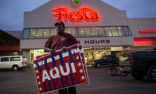 Một người Mỹ cầm tấm biển kêu gọi mọi người đi bỏ phiếu trong ngày Siêu Thứ ba. Ảnh: AP