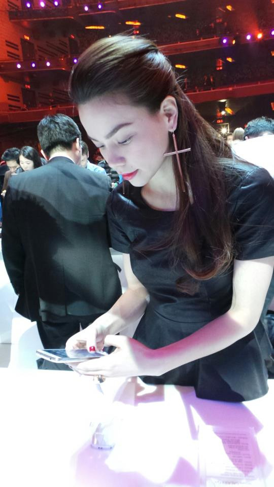 Cũng trong những chia sẻ trong ngày hôm nay, Hồ Ngọc Hà còn khoe ảnh là 1 trong những người đầu tiên được trải nghiệm chiếc Samsung Galaxy S4 ra mắt vào sáng nay.