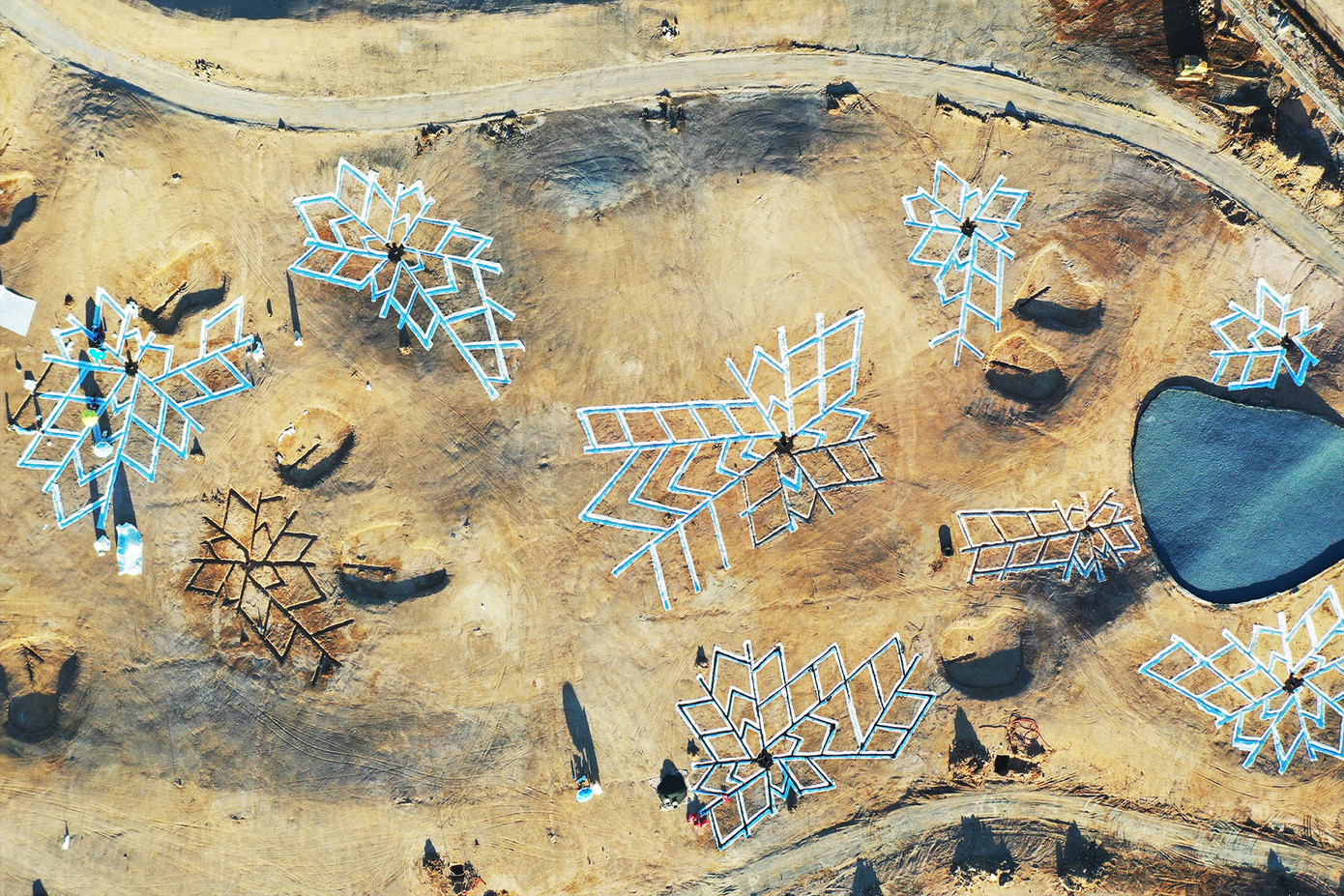 Một số lỗ golf đã bắt đầu được đắp cát.