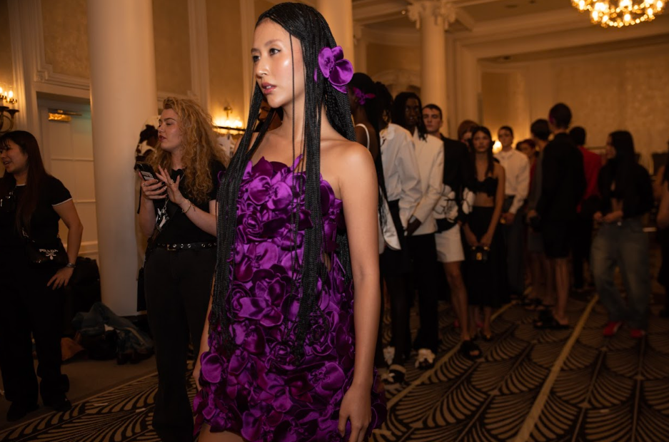 Tại đây, Quỳnh Anh Shyn toả sáng với phong thái nữ tính và quyến rũ, sải bước tự tin bên dàn người mẫu quốc tế. Nữ fashionista xuất hiện trong bộ váy tím lộng lẫy, được chăm chút kỹ lưỡng với các kỹ thuật may thêu và đính kết tinh xảo.
