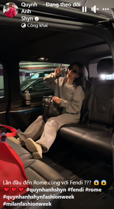 Mới đây, Quỳnh Anh Shyn đã chia sẻ một đoạn clip ghi lại ngày đầu tiên đến Roma và những đãi ngộ đặc biệt của một thương hiệu xa xỉ dành cho mình. Nhà mốt gần trăm năm tuổi của Ý - Fendi đã rất chu đáo khi cho xe đưa đón nữ fashionista từ sân bay đến khách sạn, đồng thời tài trợ toàn bộ chi phí trong 6 ngày cô tham dự Tuần lễ Thời trang năm nay.