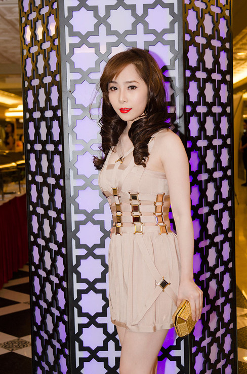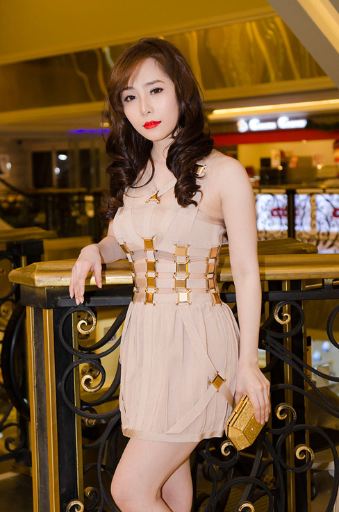 Nữ diễn viên, ca sĩ diện bộ váy hàng hiệu màu nude cắt xẻ vô cùng táo bạo, nhưng không kém phần tinh tế, khoe đôi chân thon thả và vòng eo nuột nà, làn da trắng muốt.