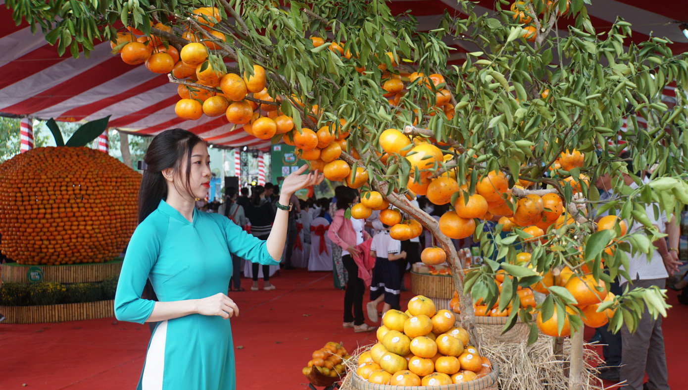 | Sáng 5/1, tại huyện Lai Vung (Đồng Tháp), chính thức khai mạc Lễ hội Quýt hồng huyện Lai Vung lần thứ I - năm 2023 với chủ đề “Khát vọng vươn lên”. Ngày hội diễn ra từ ngày 5 – 8/1, do UBND huyện Lai Vung phối hợp báo Nông nghiệp Việt Nam tổ chức với nhiều hoạt động như: Hội thảo bảo tồn và phát huy tiềm năng, giá trị quýt hồng; hội thi cây quýt hồng đẹp, thi vườn quýt hồng kiểu mẫu, ẩm thực... Ngoài ra, tại ngày hội còn trưng bày mô hình Trái quýt hồng được kết từ 800kg quýt tươi với hơn 4.000 trái, chậu quýt... thu hút đông đảo khách tham quan, chụp ảnh. Ảnh: Hòa Hội |